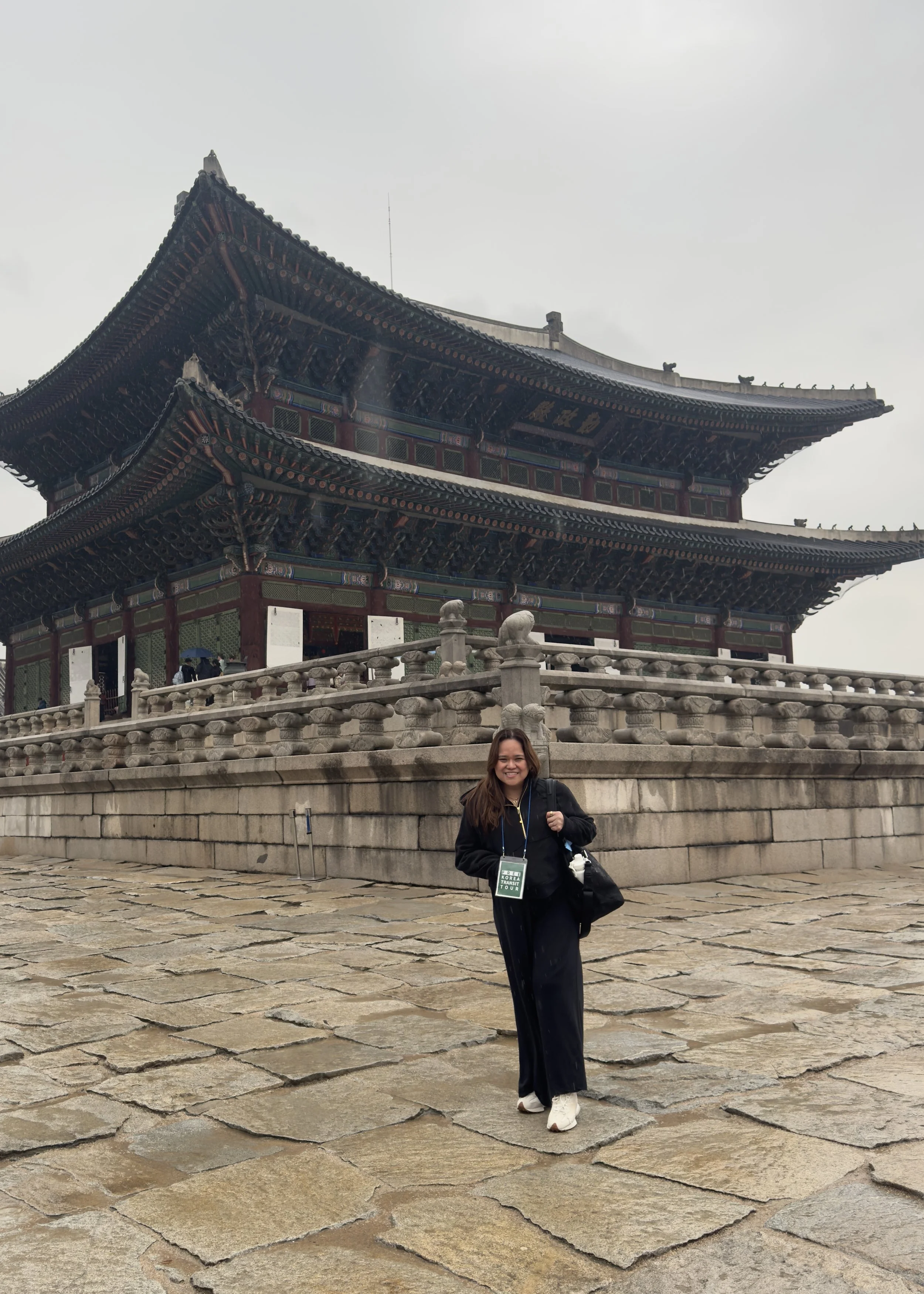 Our first stop was Gyeongbokgung Palace, a stunning historical site nestled right in Seoul’s heart. Despite the relentless rain, walking there with a borrowed umbrella, feeling the cool drizzle, and soaking in the centuries-old architecture was truly magical.
